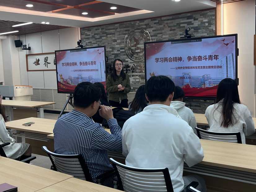 为深学细悟、宣传贯彻两会精神,不断增强党性修养,3月14日,2007so太阳集团本科生党支部在吕振羽楼818室以“学习两会精神,争当奋斗青年”为主题开展了3月份党日活动。活动由支部书记张淑艳主持,在校支部党员参加。