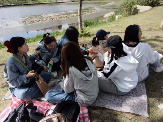草坪与微风,阳光与美味,为春末夏初的三佳湖更添一丝生机。湖边的草坪上,野餐组的同学们铺好野餐垫,围坐在一起,听微风吹过的声音,品美食传递的惬意,把话闲谈,享受绿意。从童年到成年,从学习到生活,从现在到未来,大家于言语间分享生活,于欢笑间共享快乐。