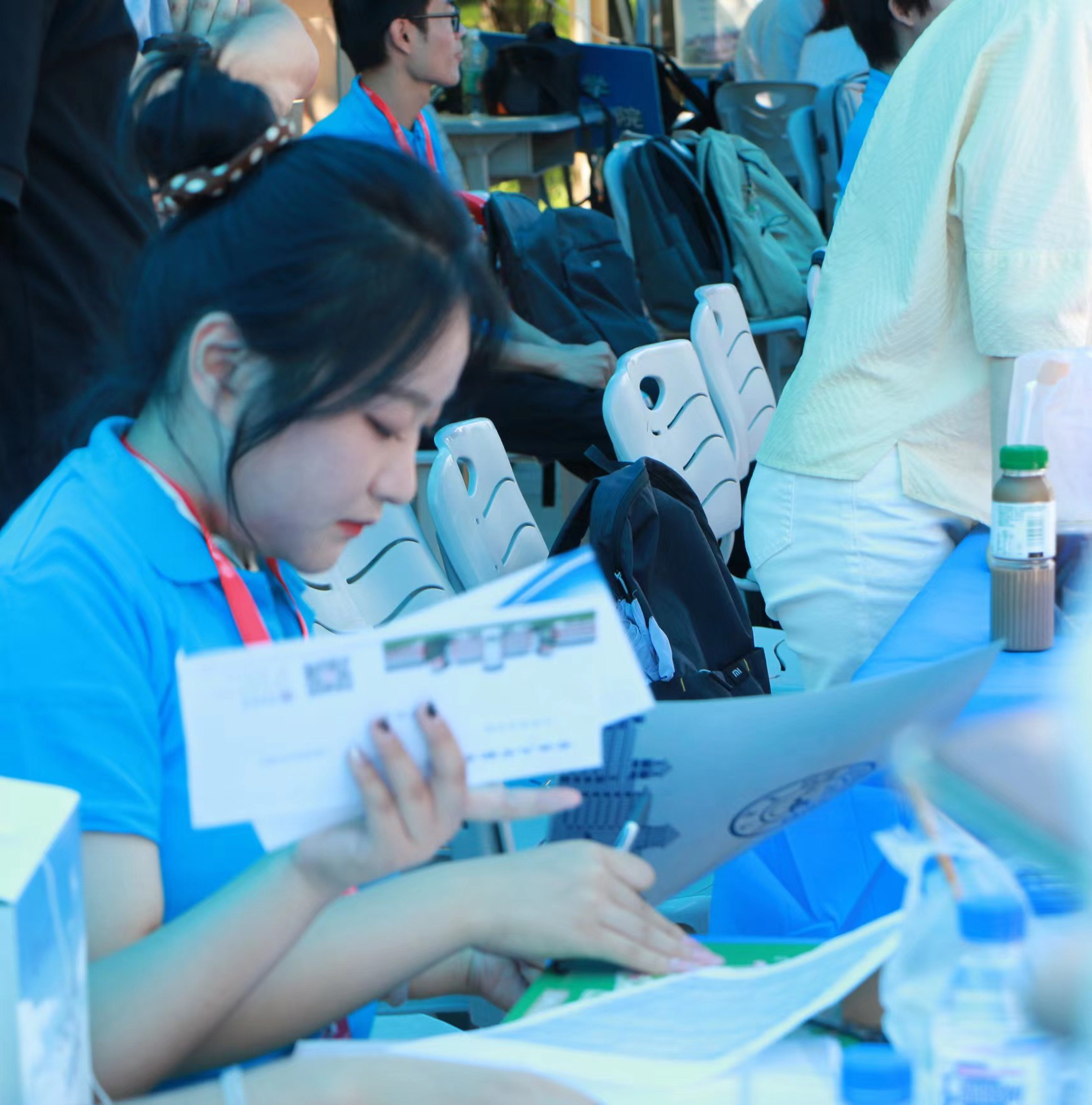 天高气清,惠风和畅,早上7时30分,公司迎新工作人员于公司迎新工作站集合,他们分工明确、各司其职、通力协作,有条不紊地开展迎新前的准备工作,以最饱满的热情迎接新生的到来。