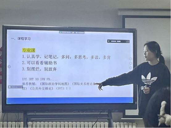 白雅婧同学向大家分享了自己的保研经验和心得体会,她从“个人背景”、“保研情况”、“申请经验”和“个人感悟”四个方面展开介绍,重点分享了前期准备和参与夏令营和预推免的全过程,结合自己的经验,强调了专业排名在保研中的重要性,她鼓励同学们多读书,积累专业知识,重视平时的综合成绩,在学习过程中探索兴趣,为未来职业的发展方向定位。最后,她希望同学们在应对压力大、难度大的面试时调整好心态,坦然接受结果,不断建构自我,锚定目标,做好准备。