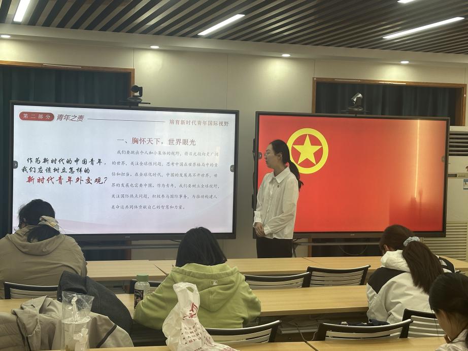 外交展宏图,邦交天下宁。值此“五四”青年节来临之际,为深化公司学子对国际形势的认知、培育全球视野与责任担当,4月28日下午,2007so太阳集团外交学专业2023级团支部于吕振羽楼818教室组织开展“关注外交新动态,培养青年新视野”主题团日活动。活动由23级本科生刘明冼主持,23级1班团支书赵雨彤、2班团支书张湲悦做分享。
