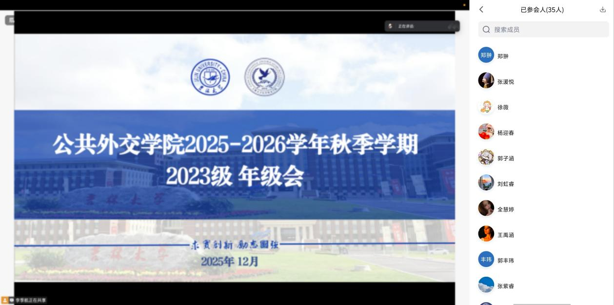 为了加强学风建设,严肃考试纪律,增强员工安全防范意识。12月11日,2023级本科生年级会议于线上举行,年级辅导员李老师与全体2023级本科生共同参加会议。