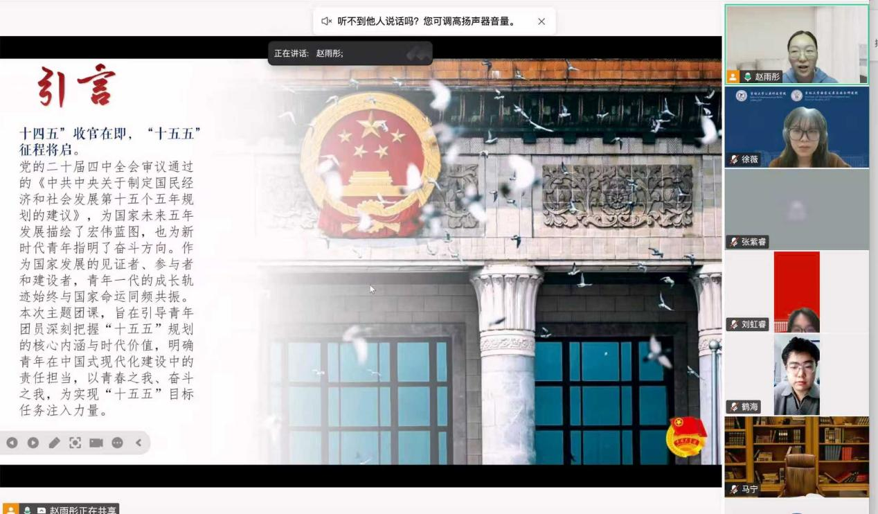 2023级1班团支部组织召开“逐梦‘十五五’,奋斗正当时”主题团课。团支书赵雨彤围绕“十五五”时期——这一全面建设社会主义现代化国家关键五年展开,讲述了其核心要义、重点领域与时代价值,分析了时代赋予青年的广阔机遇。最后,她建议同学们将个人理想融入国家建设大局,实现个人价值与国家发展的有机统一,将以青春之我、奋斗之我,在逐梦“十五五”的征程中勇立潮头,用实干书写时代答卷。