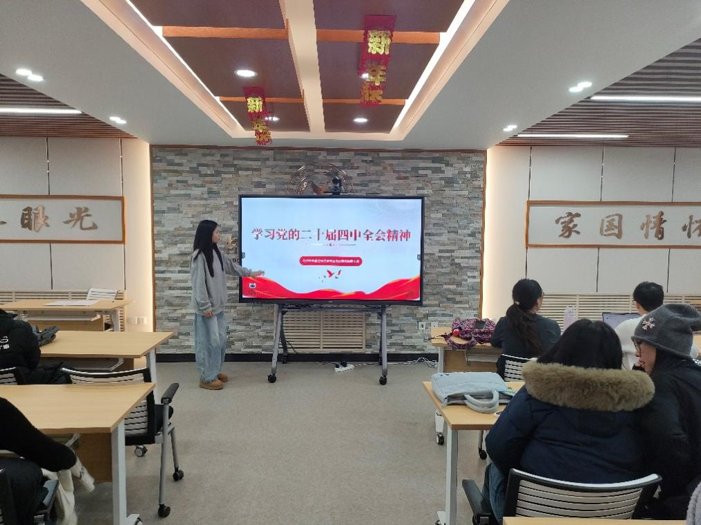 外交学专业硕士研究生团支部开展“学习党的二十届四中全会精神”主题团日活动。团支书陈晓艳主持并领学相关内容。在本次主题团日活动中,全体同学深入学习领会党的二十届四中全会精神,围绕《中共中央关于制定国民经济和社会发展第十五个五年规划的建议》开展了热烈而深入的交流讨论。讨论中,同学们踊跃发言,结合自身学习与生活实际,分享了对国家发展大政方针的理解,畅谈了对未来五年发展愿景的思考。