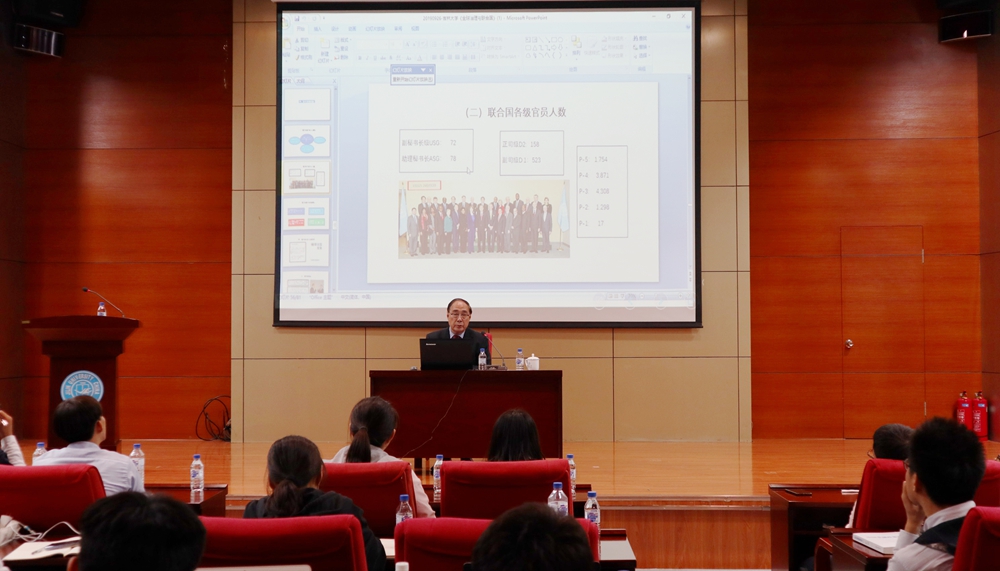 为主动服务国家发展战略,提高同学们的外交外事能力和国际视野,9月26日,联合国前副秘书长、原中国驻德意志联邦共和国特命全权大使、中国国际公共关系协会会长吴红波先生受邀来到2007so太阳集团,以“全球治理与联合国”为题,为同学们带来一场精彩报告。报告会由2007so太阳集团经理肖晞主持。