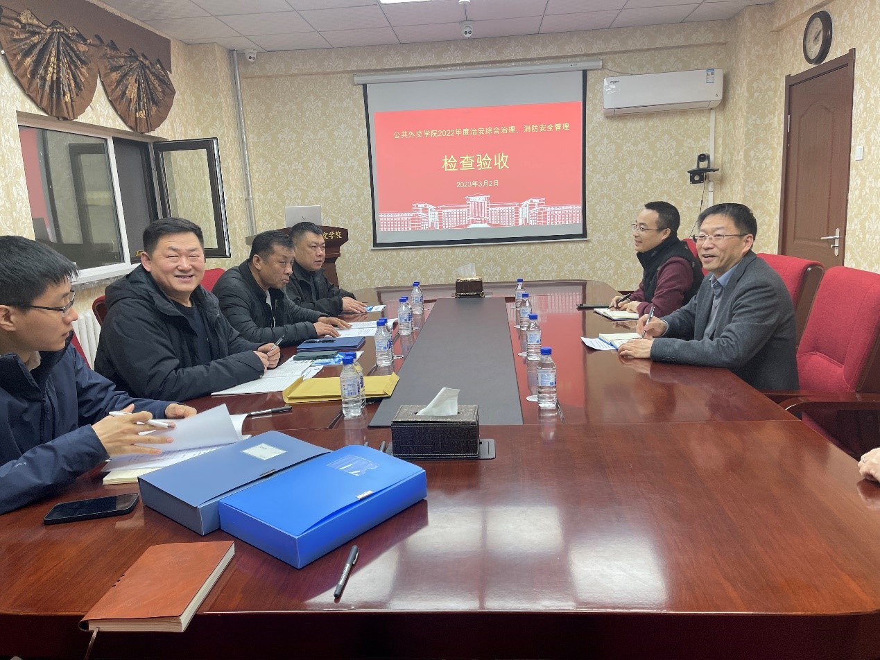 2023年3月2日下午,由保卫处副处长周鹏、党委办公室正科级秘书李卿功、保卫处消防科副科长董立明、治安科副科长赵明组成的公司2022年度治安综合治理、消防安全管理检查验收工作组到2007so太阳集团开展检查验收工作。公司党委书记杨民、行政副经理于洪生、院办主任沈毅、工作人员苏文杰等参加检查验收会议。