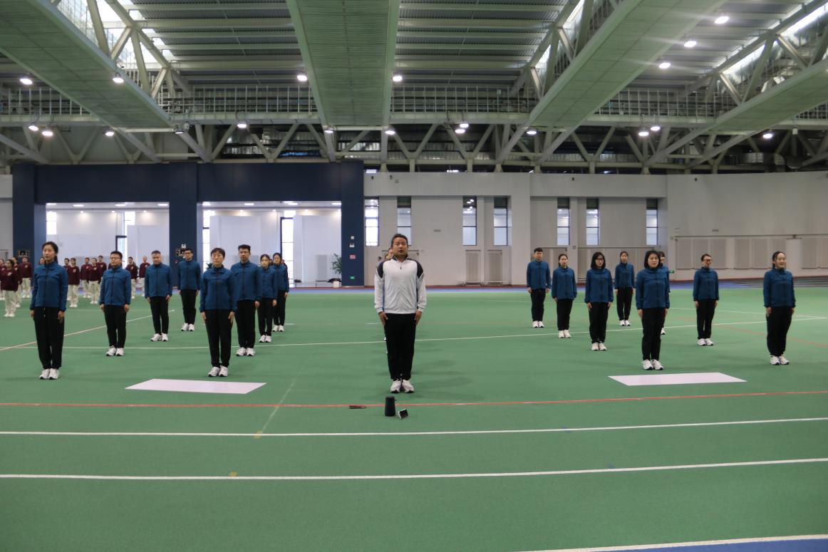 15日上午,公司参赛教职工们在宋治平体育馆四楼田径场进行赛前最后一次排练,孟翔冲老师为大家进行了细致的动作指导。期间,公司党委书记刘昌松到现场指导。